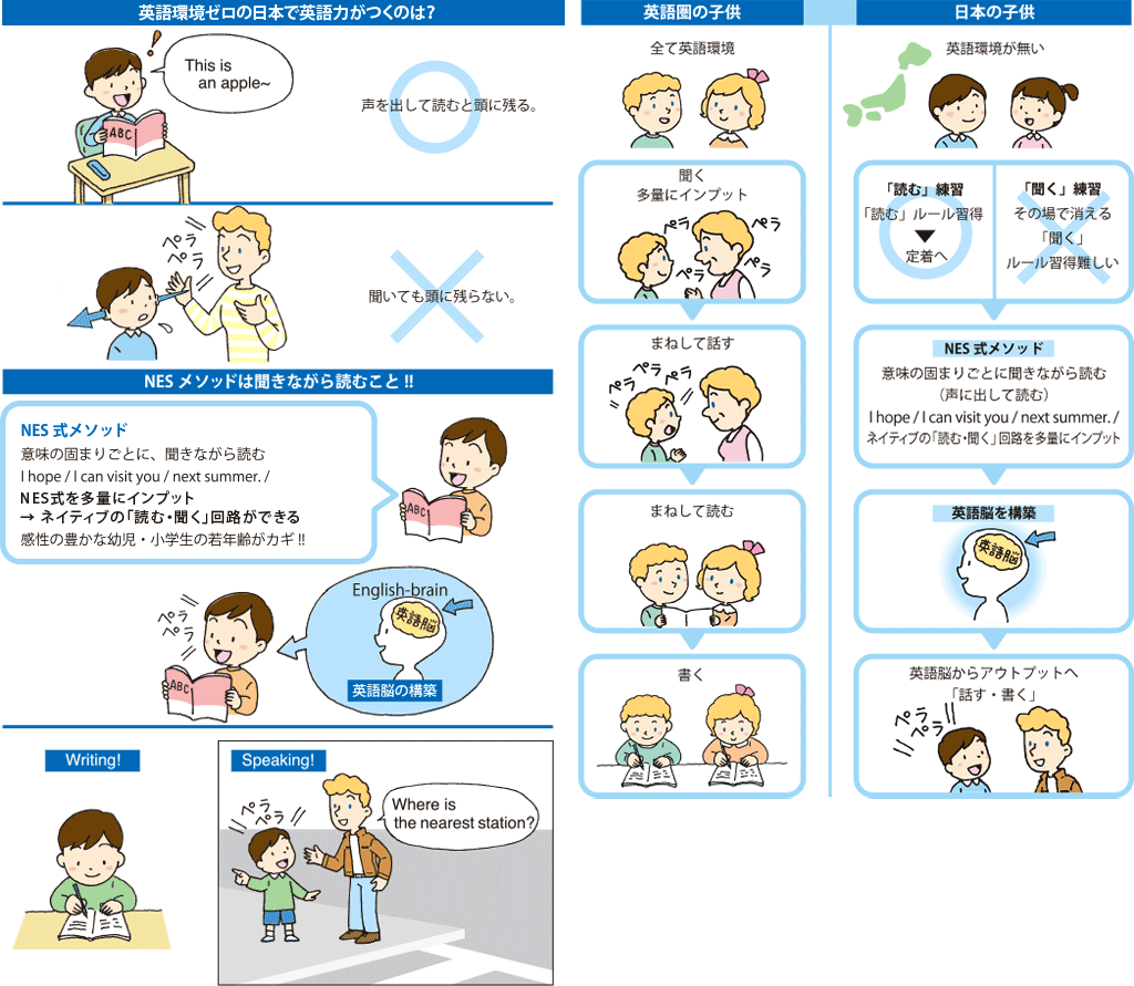 「読む、聞く」NES式リーディング指導+「書く、話す」NES式ライティング指導