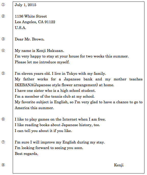 ② Your host family’s address: 103 Sunny Hill