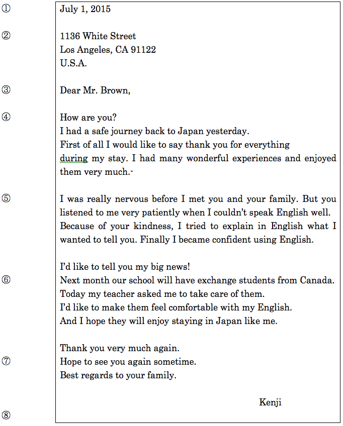 今月は留学先のホストファミリーに向けてのお礼状を練習しましょう。